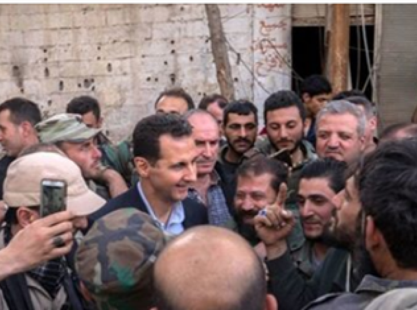Sirijska televizijska stanica "Al Ikbarija" objavila je snimak Assada kako stoji pored tenka okružen vojnicima u ulici u istočnoj Guti.