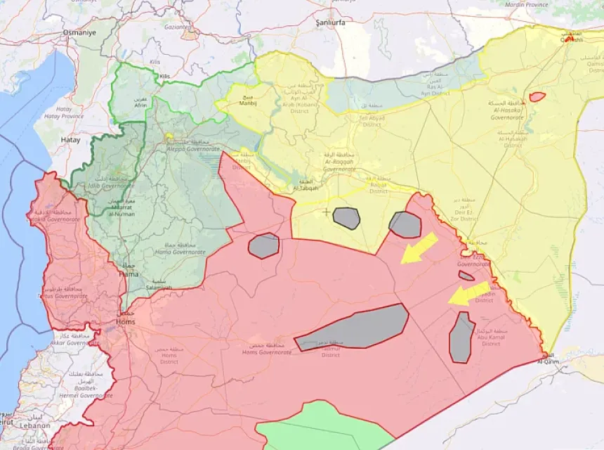 Međutim, postoji sedam sela koja nisu pod kontrolom SDF-a: Al-Salhija, Tabija, Hatla, Hešam, Marrat, Mazlum i Huseinija. Zapadni dio regije Eufrat u Deir Ez-Zoru kontrolišu vladine snage, gdje su raspoređene iranske milicije različitih nacionalnosti, zajedno s lokalnim milicijama povezanim s Iranom.