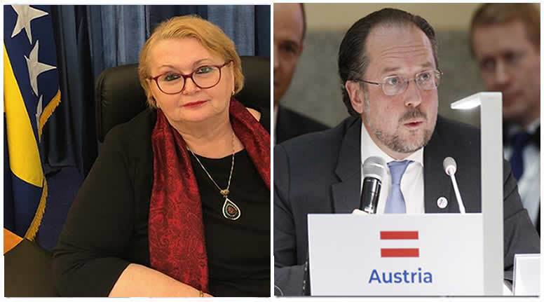 Zmjenica predsjedavajućeg Vijeća ministara i ministrica vanjskih poslova Bosne i Hercegovine Bisera Turković obavila je razgovor na telefonski poziv sa ministrom vanjskih poslova Republike Austrije Alexanderom Schallenbergom.