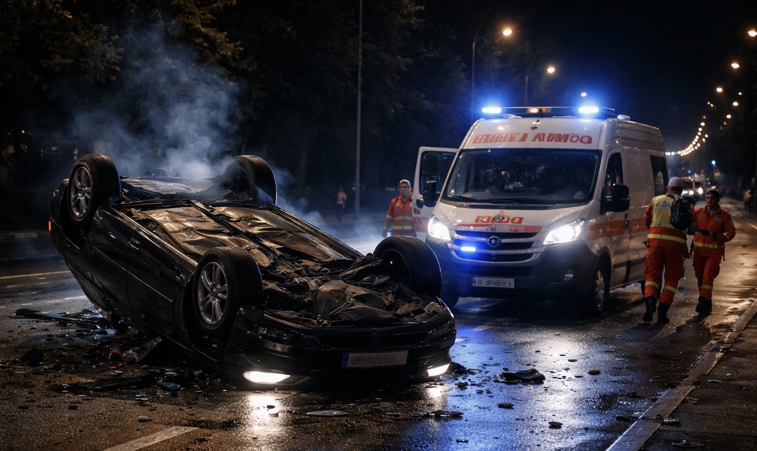 Na 20. kilometru puta automobil je sletio s ceste i pao na kosu zaštitnu ogradu. To je uzrokovalo prevrtanje vozila koje je završilo na kraju.