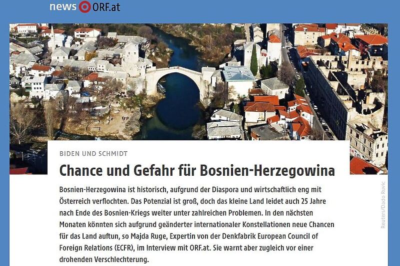 "Nakon godina stagnacije u kojoj se EU i SAD nisu udružile da bi pomogle u rješavanju najnužnijih problema u zemlji, uvjeti su se promijenili. S Joeom Bidenom, ne postoji samo jedan američki predsjednik koji dobro poznaje BiH lično. Bidenova vlada je prvenstveno zainteresirana za borbu protiv kleptokratije i ponovno jačanje vladavine zakona i institucija, pa su to "dobre vijest", objašnjava Ruge.