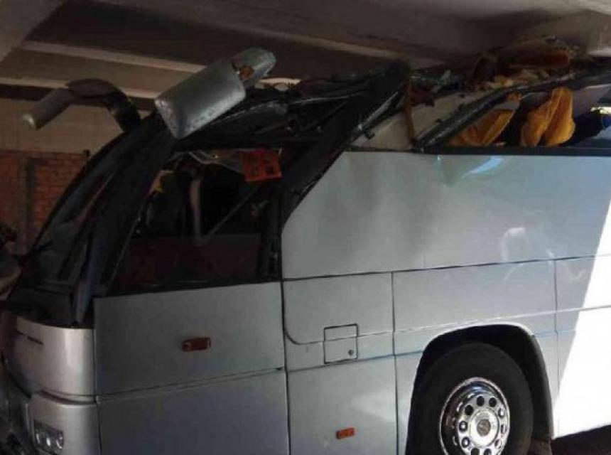 Vozač autobusa nije obratio pažnju na znak s upozorenjem da visoki autobusi ne mogu proći ispod tog mosta.