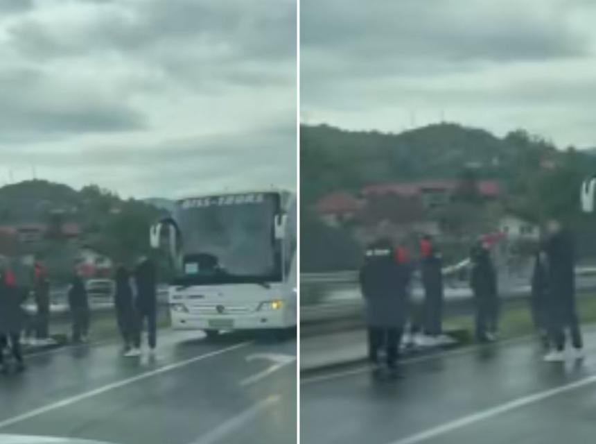 Kako se na snimku vidi, fudbaleri Čelika su ispred autobusa i čini se da nije riječ o težoj nesreći. Pričinjena je manja materijalna šteta.