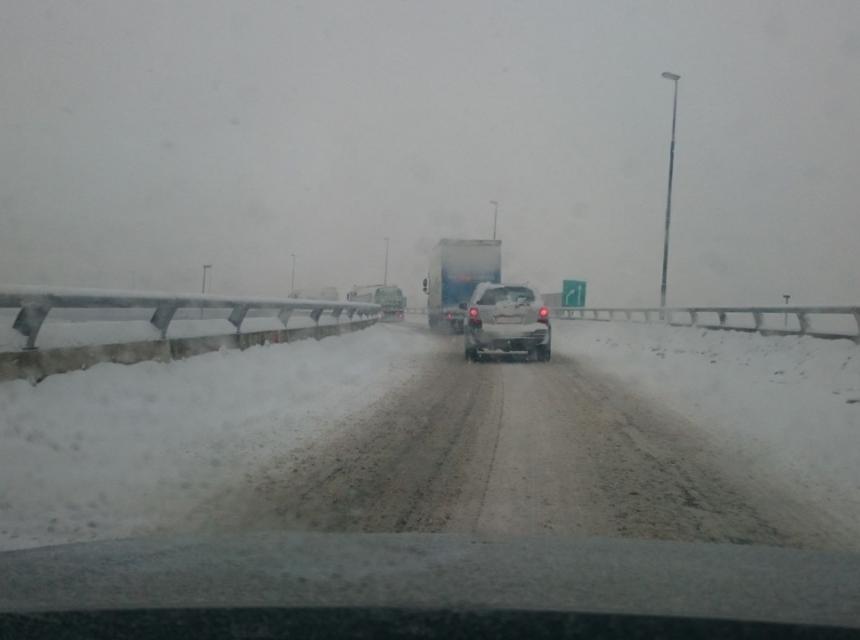 Zbog snijega koji pada u većem dijelu BiH otežano je saobraćanje. Jutros je na dionici autoceste u Sarajevu došlo do udesa dva automobila.