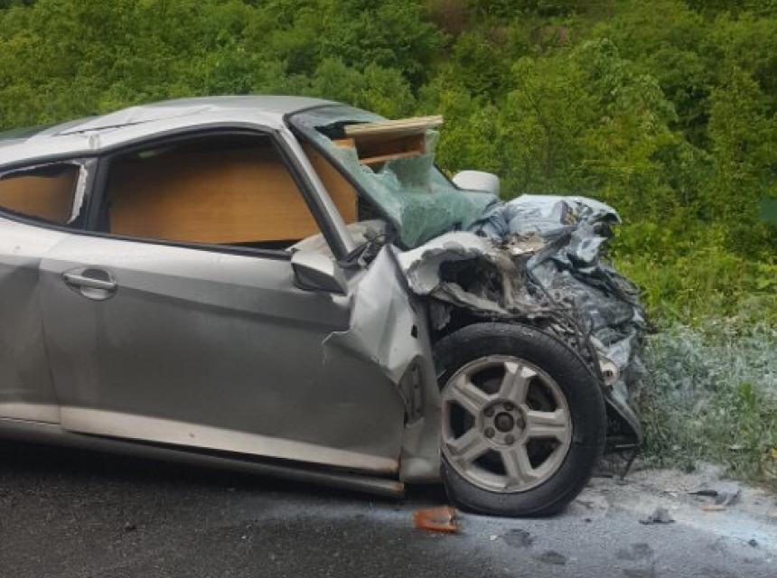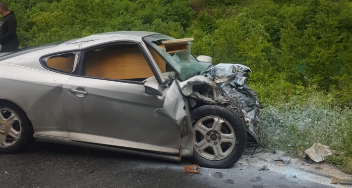 Od siline udara, putničko vozilo Hyundai skoro da je potpuno prepolovljeno