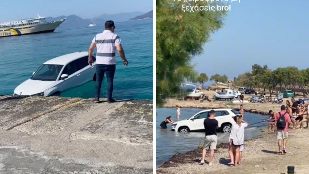 Do nezgode je došlo prošlog petka na grčkom ostrvu Agina blizu Atine, kad se bijela Škoda iz nepoznatih razloga otkotrljala u more.