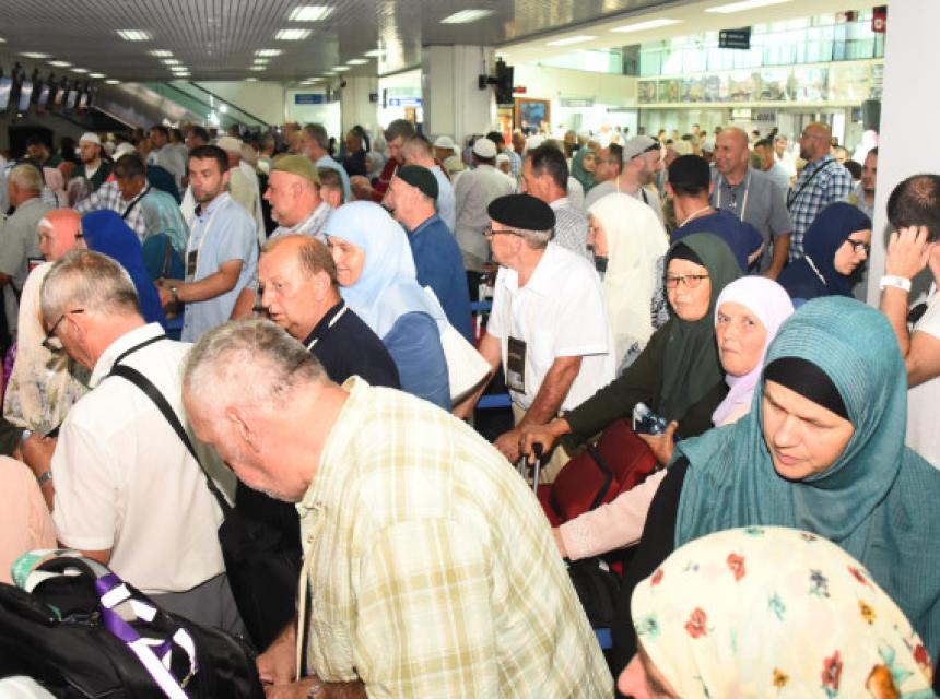 Uprkos jutrošnjoj odgodi leta, hadžije smo zatekli u opuštenoj i veseloj atmosferi, kako uzbuđeno očekuju polazak. Radnici aerodroma poduzeli su sve da njihov odlazak bude ugodan i brz.