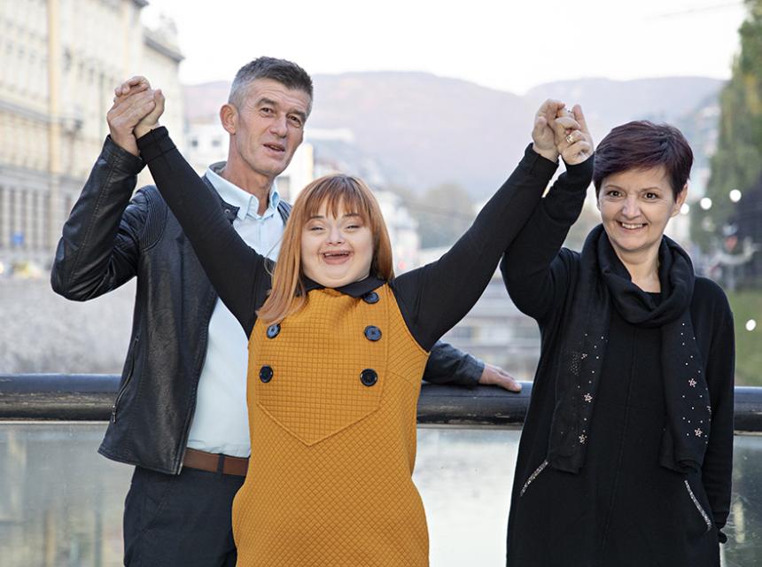 Evo, da dodamo na kraju, Azra je prva osoba s Downovim sindromom koja je u BiH dobila posao. Već treću godinu radi u kompaniji cm i sretna je. I ona i njeni roditelji su jako zahvalni rukovodstvu firme koja ima razumijevanja za Azrino odsustvo s posla, kad ide na takmičenja. “Ta firma je za Azru učinila više nego sve institucije zajedno. I jako sam zahvalna čelnom čovjeku cm-a Vlatku Kafadaru. Zaslužuje da ga se spomene. Azra se jako promijenila otkako je počela raditi, postala je samostalnija, brani sebe i svoje stavove, osjeća se korisnom i ravnopravnom sa ostalima”, govori Ramzija.