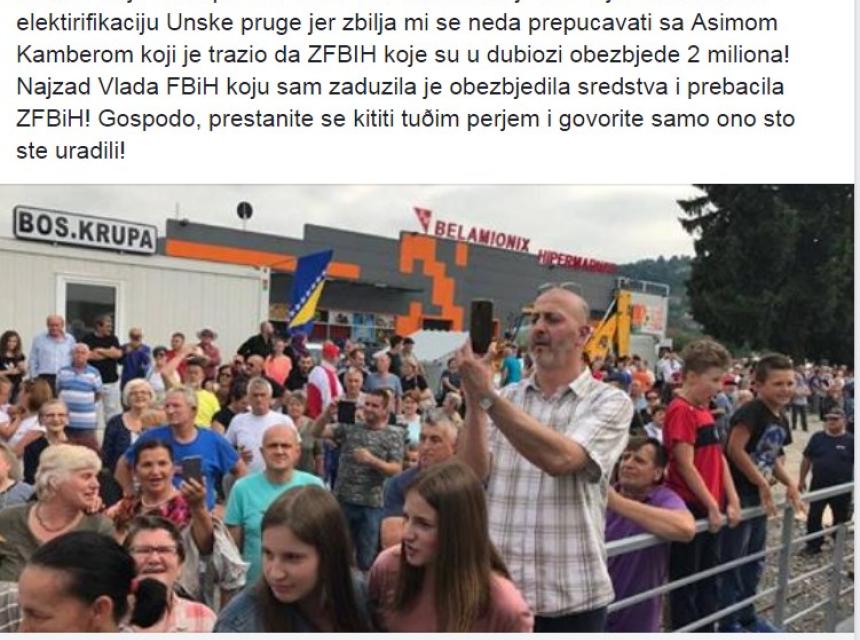 Povodom objava na lokalnim portalima u kojima se navodi da je SDA na skupu u Bihaću istakla kako su njeni kadrovi zaslužni za elektrifikaciju Unske pruge i još neke druge projekte koji su u proteklom periodu realizirani na području Unsko-sanskog kantona, jučer je reagirala Azra Hadžić Bećirspahić na svojoj oficijelnoj facebok stranici kazavši kako su to neistine.