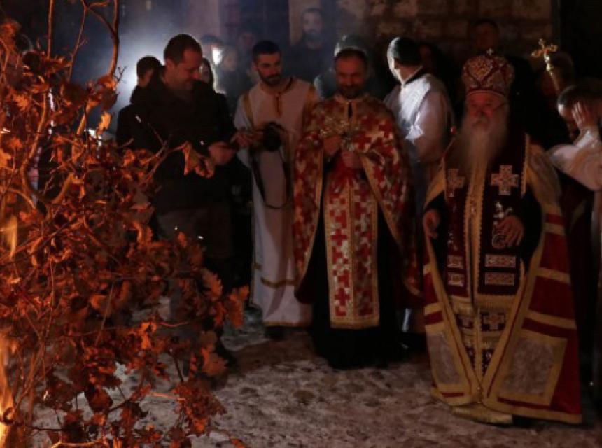 Večernju službu i paljenje badnjaka služio je mitropolit dabrobosanski Hrizostom.