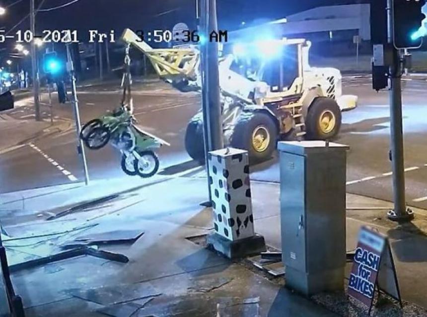 U australskom Queenslandu muškarac je ukrao bager koji je iskoristio za krađu motocikala. Usljedila je policijska potjera, a sve je snimljeno sigurnosnim kamerama.
