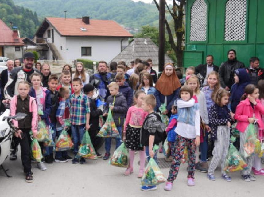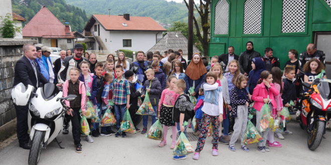 Sreća i osmijesi djece. ne samo zbog paketića, nego i prilike da sjednu na velike motore te da se fotografišu sa ovim divnim ljudima je slika koju će pamtiti još dugo.