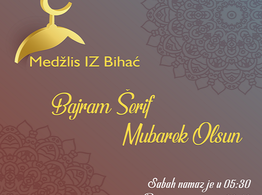 Napominjemo da će se u svim džamijama na području Medžlisa IZ Bihać sabah namaz klanjati u 05:30, a Bajram namaz u 06:43 sati.