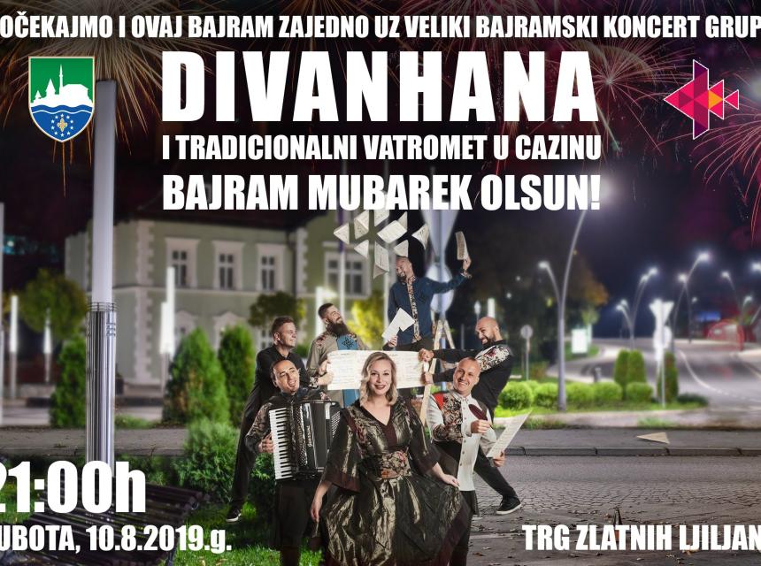 U subotu 10.08.2019. godine, s početkom u 21:00, na Trgu Zlatnih ljiljana u Cazinu bit će upriličen koncert i druženje povodom obilježavanja jednog od najvećih muslimanskih praznika Kurban bajrama.