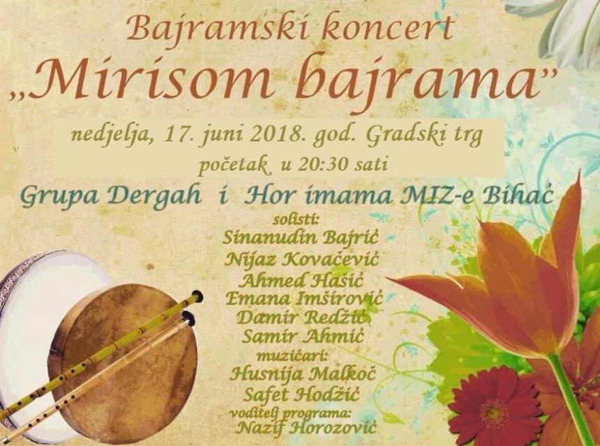 Nakon degustacije i bajramskog čašćenja na gradskom trgu će početi veliki bajramski koncert u kojem će učestvovati Hor imama Medžlisa IZ Bihać i hor Dergjah, te solisti Sinanudin Bajrić, Nijaz Kovačević, Ahmed Hašić, Emana Imširović, Damir Redžić, Samir Ahmić, te muzičari Husnija Malkoč i Safet Hodžić. Voditelj programa je Nazif Horozović.