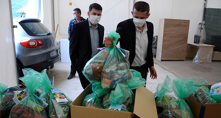 Delegacije triju džemata u bjelopoljskoj kotlini nadomak Mostara nakon što su u predbajramskim danima obradovale stotine mališana bajramskim paketićima, danas su isto učinile i u Izbjegličkom centru Salakovac.