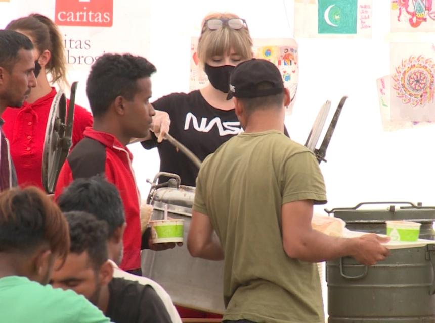 Kao i prethodne dvije godine, džematlije bihaćkog džemata Sokolac, u saradnji sa više humanitarnih organizacija, upriličili su bajramski ručak za migrante, smještene na Lipi.