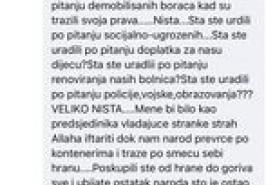 “Ma kakve ste vi to probleme riješili? Vi ste nesposobni za rješavanje bilo kakvih problema. Narod ste otjerali iz države, dolazite i obilazite druge gradove samo pred izbore. Šta ste uradili po pitanju demobilisanih boraca kad su tražili svoja prava.....Ništa. Šta ste uradili po pitanju socijalno-ugroženih…?