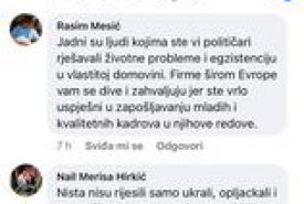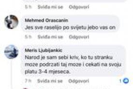 “Jesi, samo ste napravili probleme na granicama, poslao je sve kod Merkel, pa čuj i to je jedna vrsta rješavanja. Bravo Bake i samo da znaš da te čekaju Fadilovi raspiratori poslije toliko iftara i zagrljaja tobe ja Rabbi.” “Narod je sam sebi kriv, ko tu stranku može podržati, taj može i čekati na svoju platu 3-4 mjeseca.”