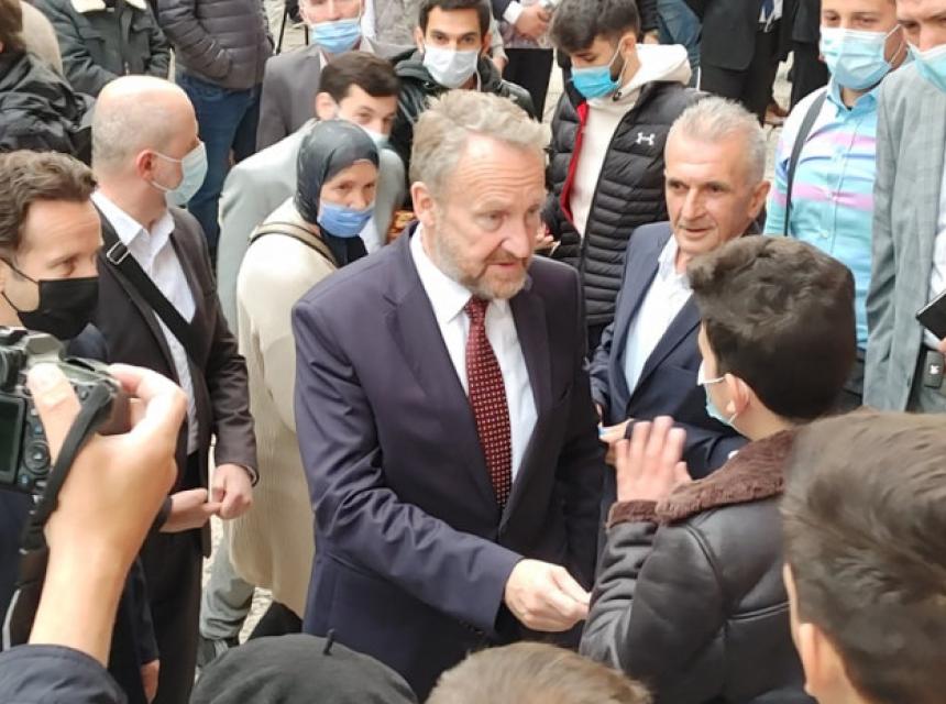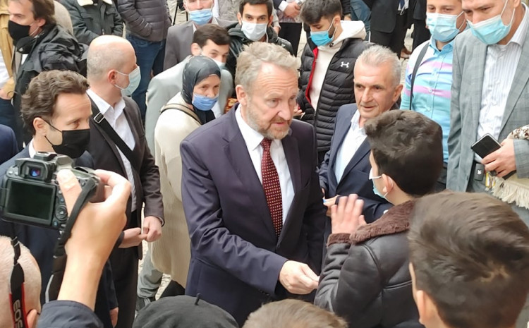 Ispred Begove džamije zabilježili smo kako bajramluk daje lider SDA i predsjedavajući Doma naroda Parlamentarne skupštine BiH Bakir Izetbegović.