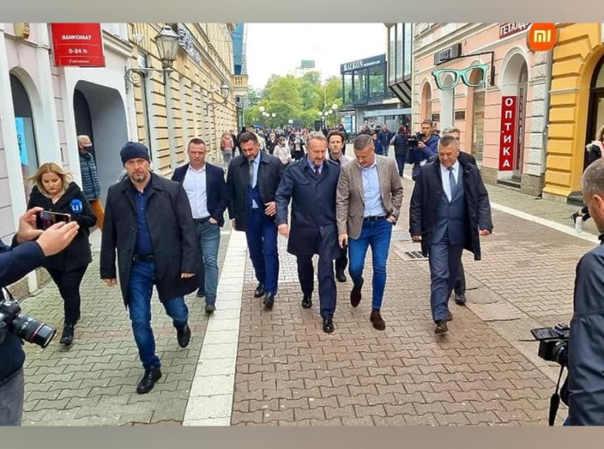 Izetbegović je s kolegama iz SDA prošetao banjalučkim Trgom Krajine i Gospodskom ulicom, gdje mu se pridružio i potpredsjednik SDP-a Vojin Mijatović.