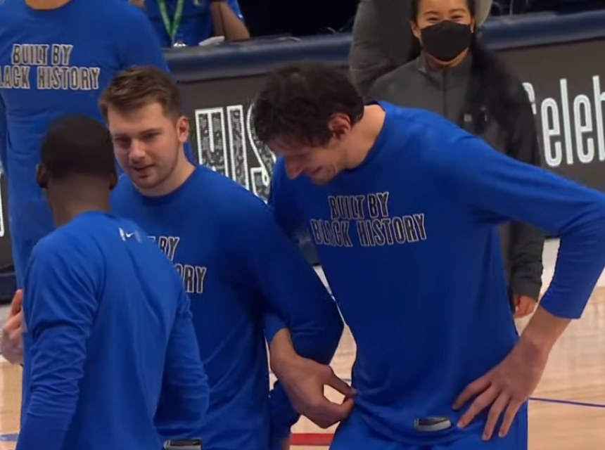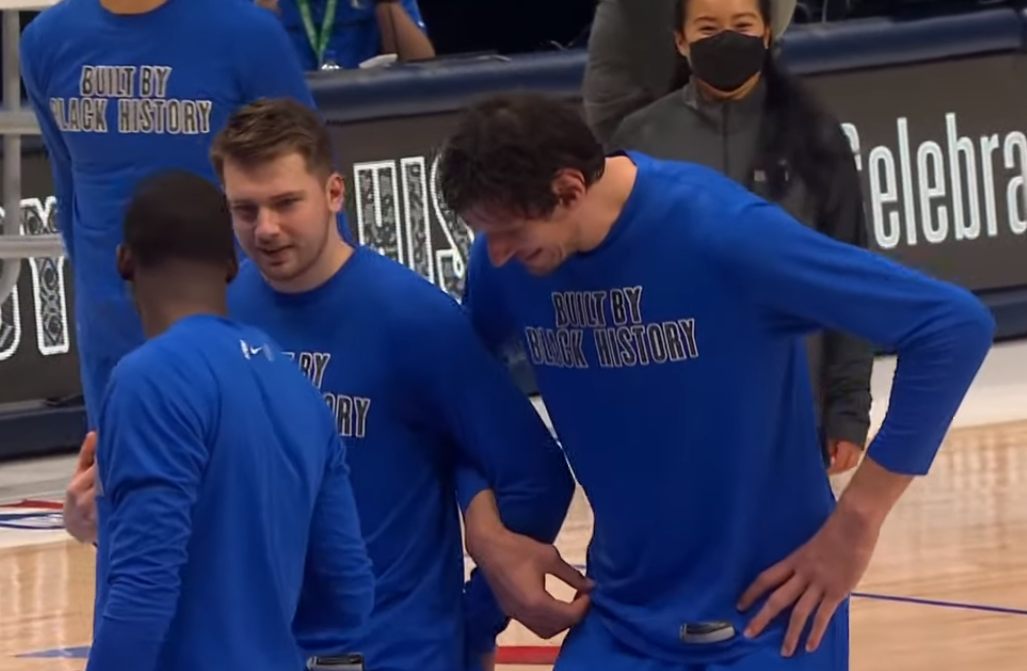 A, Dončić i Marjanović nasmijali su brojne korisnike društvenih mreža - naime na NBA parketu zaigrali su kolo, a timske kolege pokušale su ih pratiti.