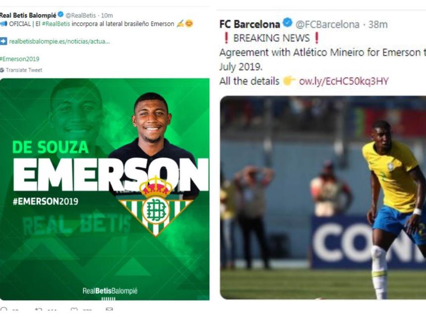Vijest da će Emerson postati član Betisa i Barcelone stigla je od oba kluba preko zvaničnih društvenih mreža u istom satu, što ovaj transfer čini jako zanimljivim.