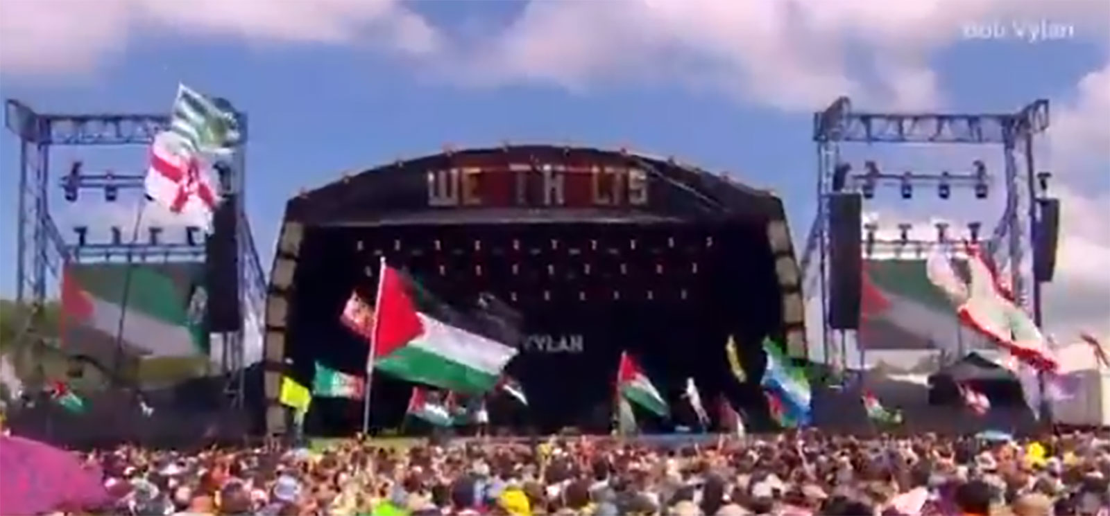 Bob Vylan su svoj performans održali uoči irsko-propalestinskog rap sastava Kneecap, a tokom nastupa više puta su uzvikivali “Free Palestine!” i “Death to the IDF!”, što je publika zdušno prihvatila. Jedan od članova benda je, između ostalog, vrijeđao bivšeg židovskog menadžera muzičke produkcije, nazivajući ga “j*nim cionistom”.