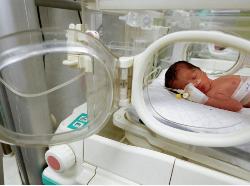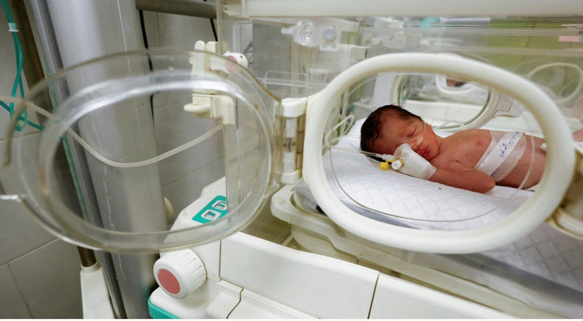 Beba je sada u inkubatoru u bolnici u Rafahu pored još jedne bebe.