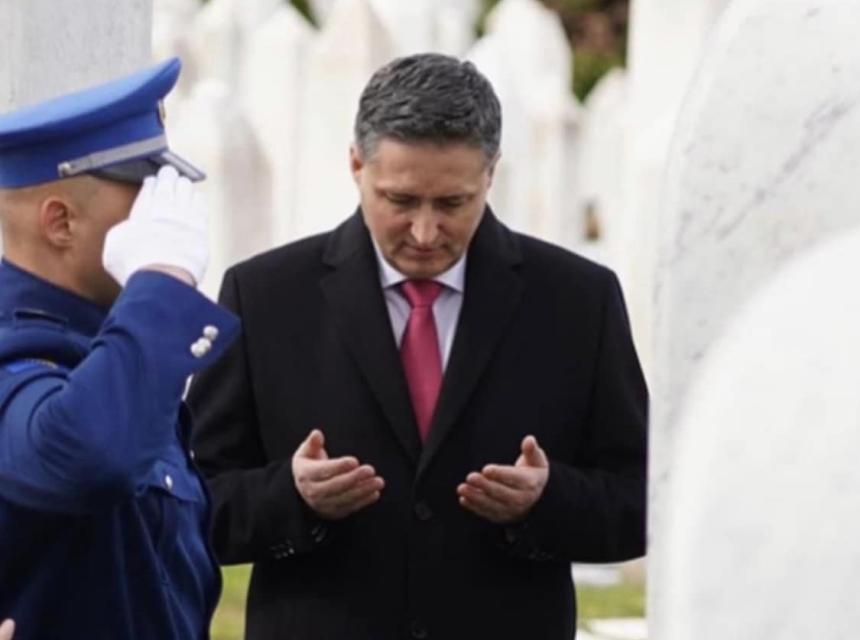 - Nikome nećemo dozvoliti da izjednačava branitelje Bosne i Hercegovine i presuđene ratne zločince. Nećemo to dozvoliti ni visokom predstavniku Christianu Schmidtu niti bilo kome drugom. Prihvatanje historijske laži je zločin u miru. Legalno i nelegalno, humano i zločinačko, civilizacijsko i anticivilizacijsko se ne mogu i ne smiju izjednačavati - poručio je Bećirović.