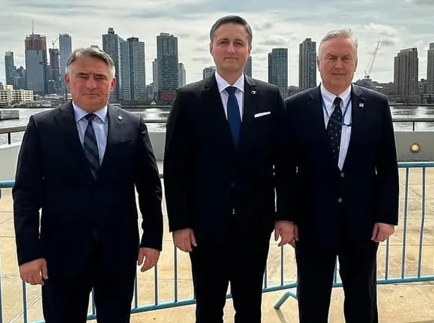 Foto: Članovi Predsjedništva BiH Željko Komšić i Denis Bećirović i bh. ambasador u UN-u Zlatko Lagumdžija