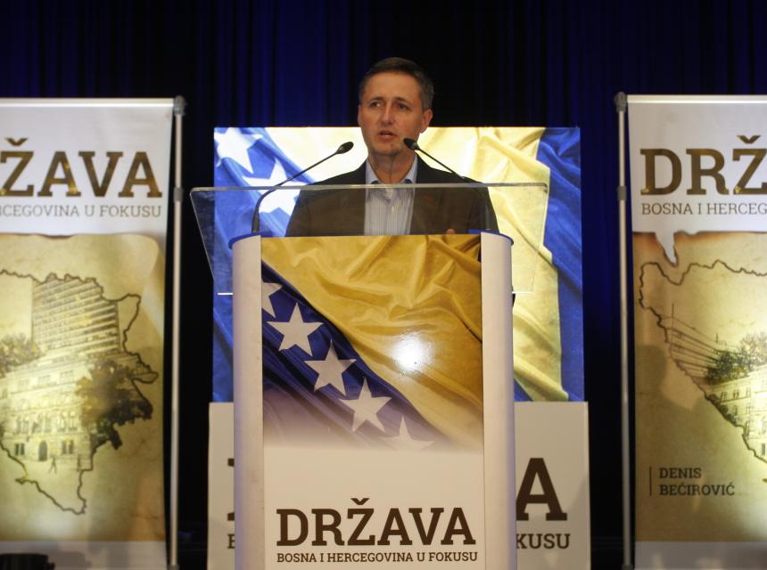 Pored prof. dr. Denisa Bećirovića, na promociji knjige „Država Bosna i Hercegovina u fokusu“ su govorili promotori Saša Magazinović, Jasmin Imamović, Zukan Helez, Ferid Buljubašić, doc. dr. Goran Behmen, Nerkez Arifhodžić, Lana Prlić i doc. dr. Benjamina Londrc.