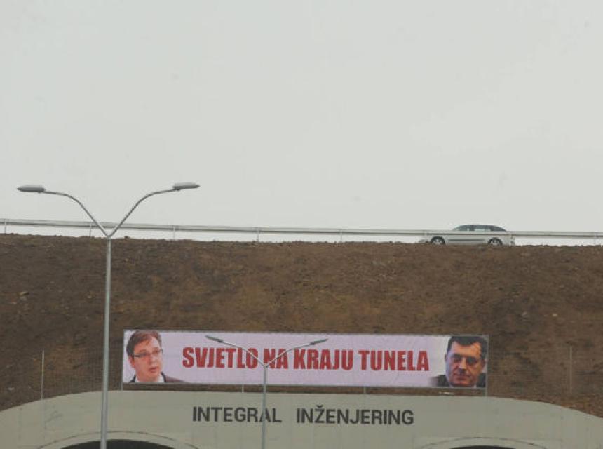 Ivan Begić, predsjednik mladih PDP-a danas je uklonio transparent na autoputu Banjaluka-Doboj, kod tunela Potočani, “Svjetlo na kraju tunela” na kojem se nalaze fotografije Milorada Dodika, člana Predsjedništva BiH i Aleksandra Vučića, predsjednika Srbije.