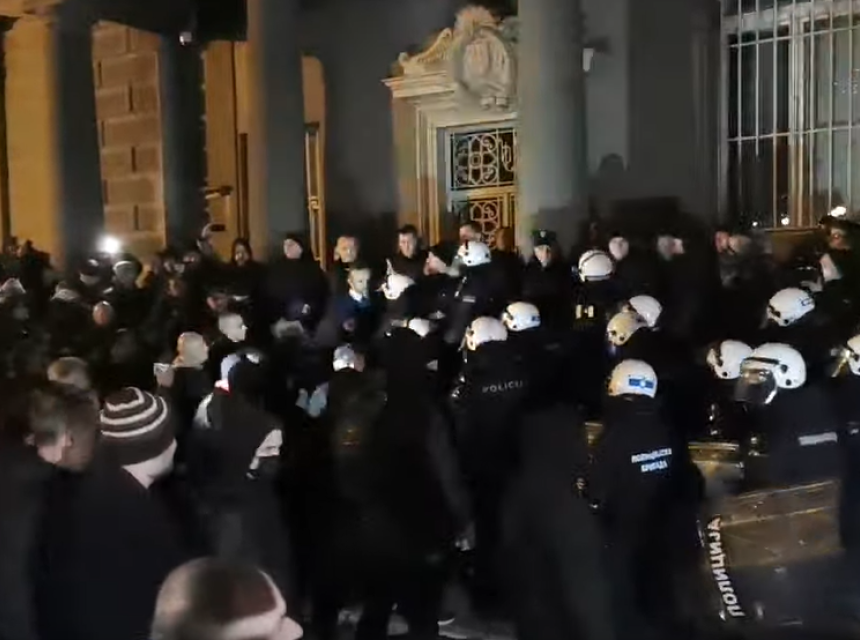 U jednom momentu došlo je do incidenta, s obzirom da su desničari porušili ogradu i prišli zgradi Predsjedništva Srbije uzvikujući “gdje je Vučić” i “izdaja, izdaja”.