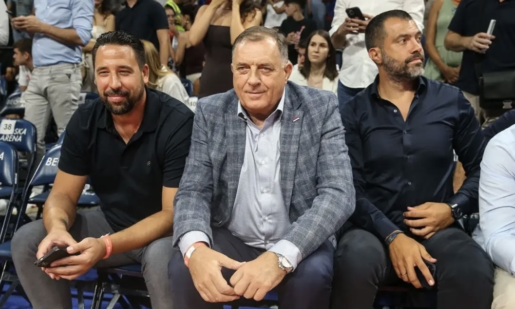 Kako javlja Sport klub, izviždan je i bivši predsjednik RS-a Milorad Dodik. U tom trenutku pojačana je muzika s razglasa.