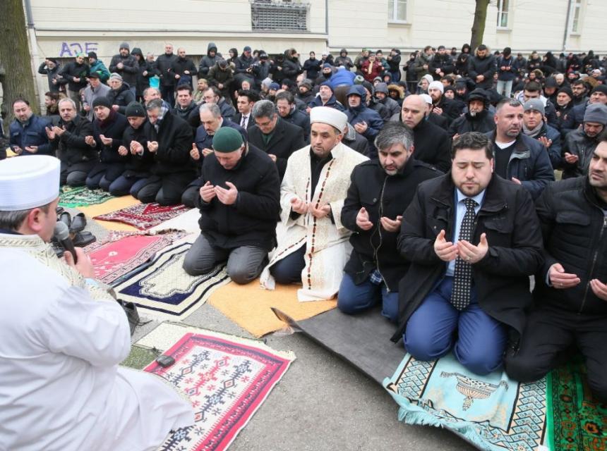 Iako je bilo veoma hladno, veliki broj muslimana okupio se pored džamije, kojom inače upravlja Uprava za vjerske poslove turske islamske zajednice u Njemačkoj (DITIB), kako bi molitvom na tom mjestu izrazili solidarnost i jedinstvo nakon nedavnog incidenta.