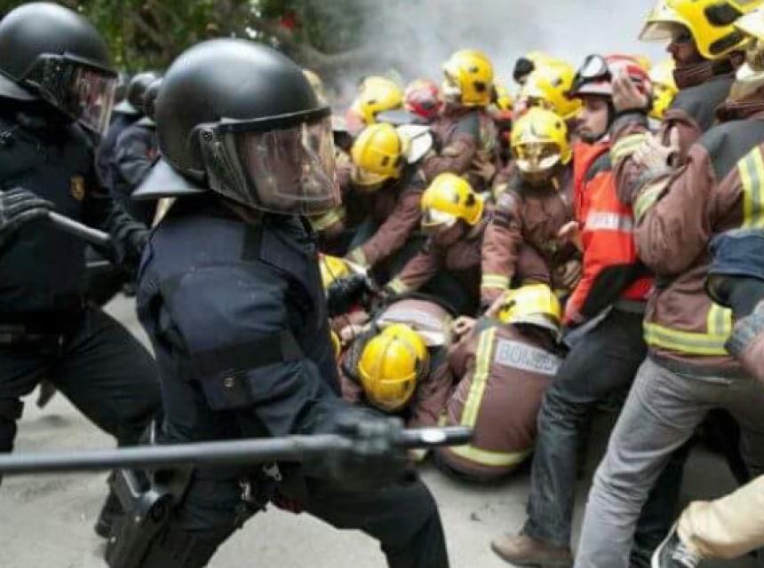 Katalonski vatrogasci pokušali su da stanu u odbranu građana koje španska policija bjesomučno tuče u pokušaju da ih spriječi da glasaju na referendumu o nezavisnosti te pokrajine.