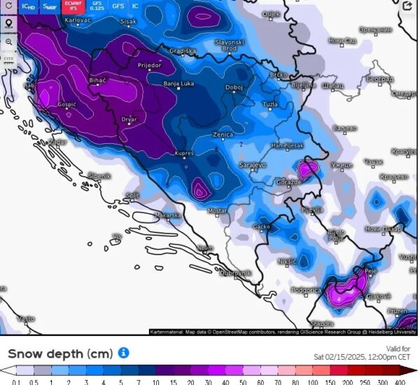 “Kiša će brzo preći u snijeg, prvo u Krajini, a zatim, kako temperatura bude padala, i u ostatku zemlje. Do subote ujutro, značajniji snježni pokrivač očekuje se u Krajini, kao i na planinama centralne i zapadne BiH.
