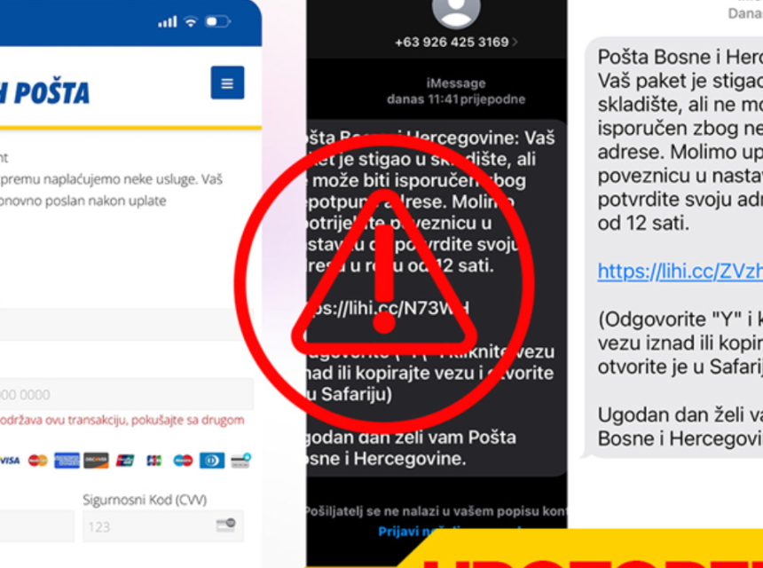 “Iako je “JP BH POŠTA” d.o.o. Sarajevo poduzelo sve što je bilo u okviru naših mogućnosti kako bi se spriječile zloupotrebe znaka i logotipa BH Pošte, ponovo imamo povećan broj pokušaja prevara naših korisnika putem lažnih SMS poruka.