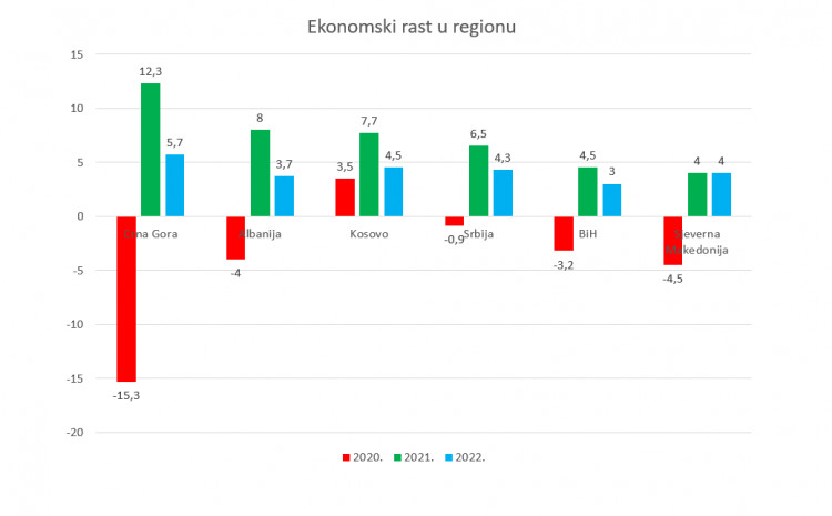Sjeverna Makedonija tako jedina država koja neće imati znatno veći rast od BiH u 2021. Ovo je državi se u 2021. predviđa nešto niži rast od BiH u iznosu od 4 posto, ali joj se identičan rast predviđa i naredne godine, za razliku od BiH kojoj se predviđa identičan rast.