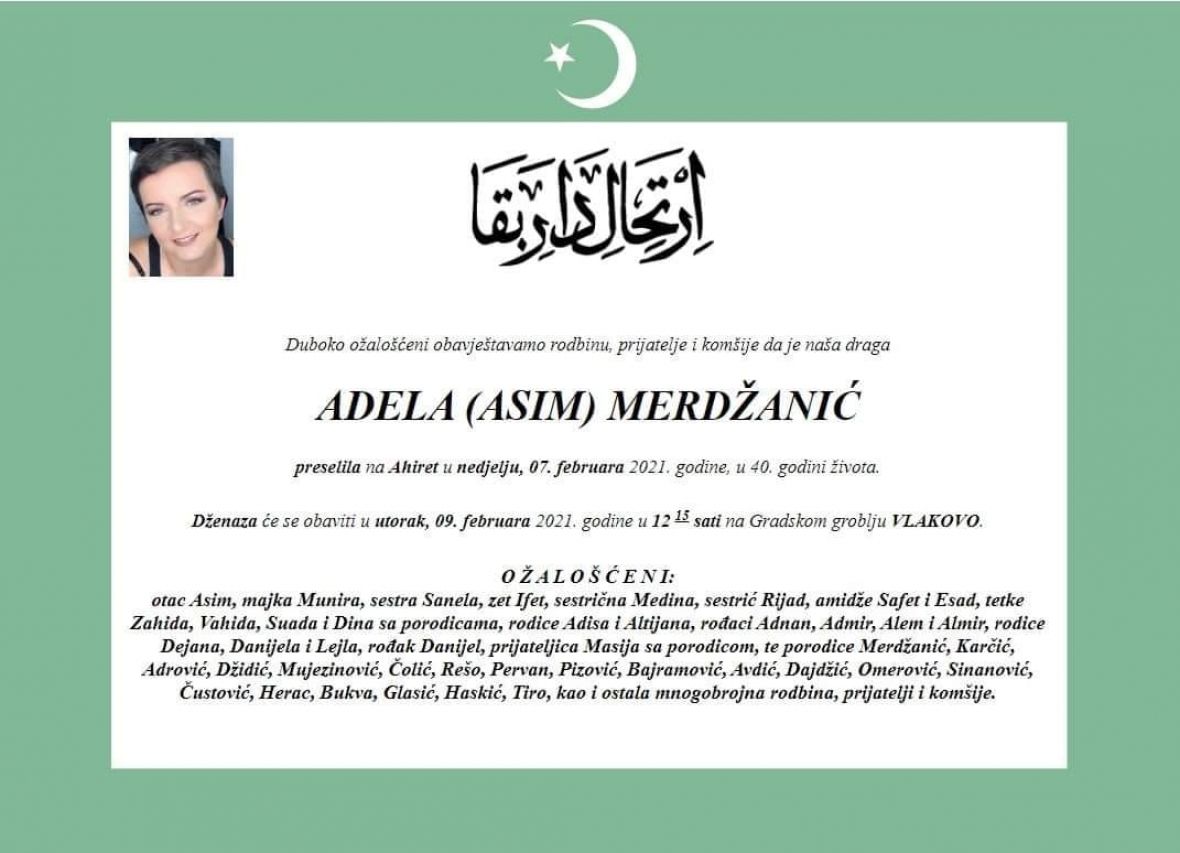 Adela se posljednji put na Facebooku oglasila 11. januara, kada je prijatelje na ovoj društvenoj mreži obavijestila da je zajedno sa mamom prebolovala koronu po povratku sa liječenja u Sarajevo, koja je dodatno ugrozila njeno zdravlje.