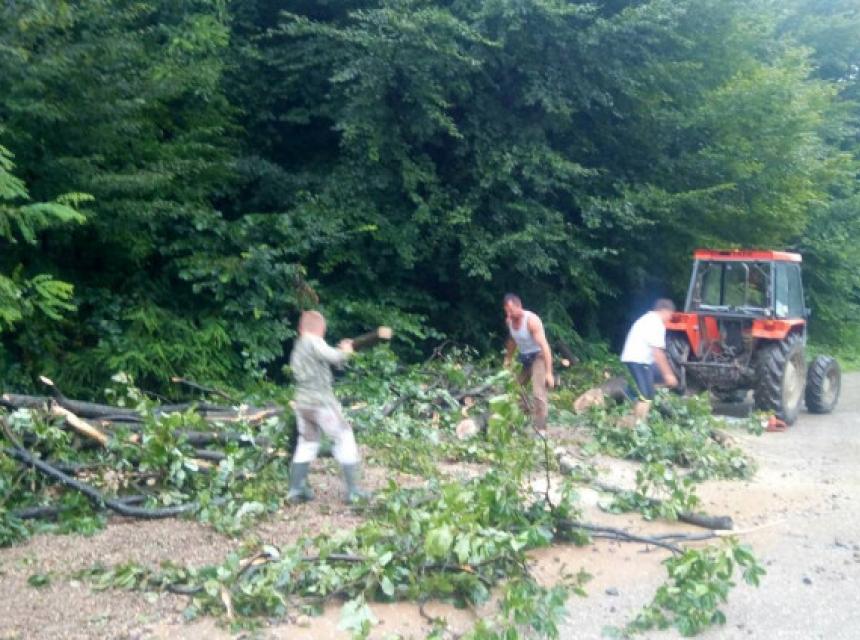 U Doboj Istoku, u blizini porodične kuće Džanić u naselju Stanić Rijeka, vjetar je obarao debela stabla hrasta i prava je sreća da u tom trenutku nije bilo ljudi na putu, na koja su stabla padala.