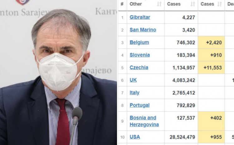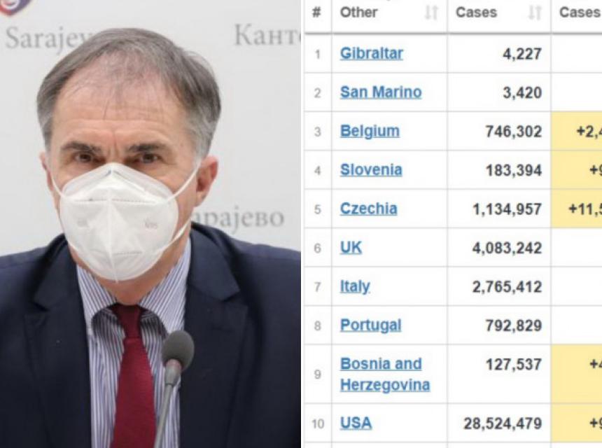 Lošije stanje imaju Gibraltar, San Marino, Belgija, Slovenija, Češka, Velika Britanija, Italija, Portugal, a BiH je, prema crnim statističkim pokazateljima, jučer pretekla i uzdrmane SAD.