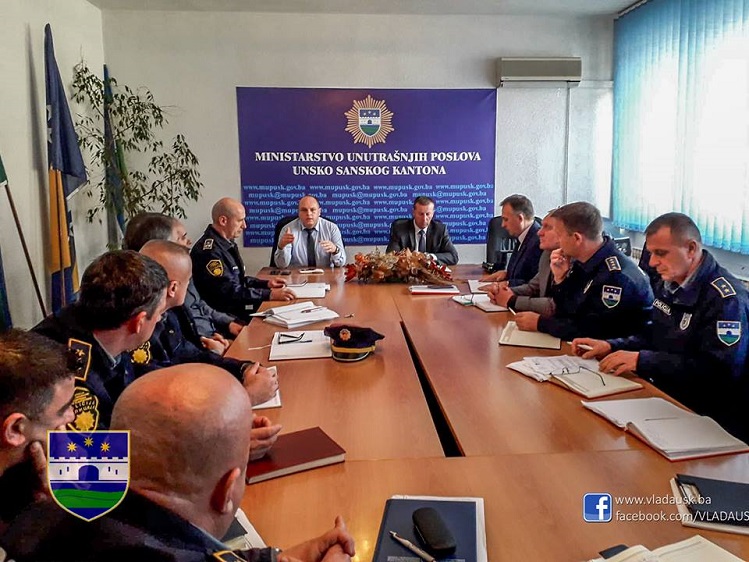 Mustafa Ružnić, premijer Unsko-sanskog kantona i vršilac dužnosti ministra unutrašnjih poslova Unsko-sanskog kantona, sa komesarom policije Mujom Koričićem, održao je jučer radni sastanak sa načelnicima sektora uprava i komandirima policijskih stanica.