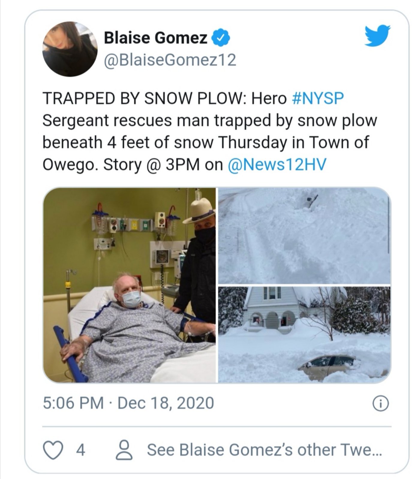 Muškarac iz New Yorka (58) spašen je nakon 10 sati koje je proveo u svojim kolima zatrpan sa četiri metra snijega i pri tome je pretrpio hipotermiju i promrzline.