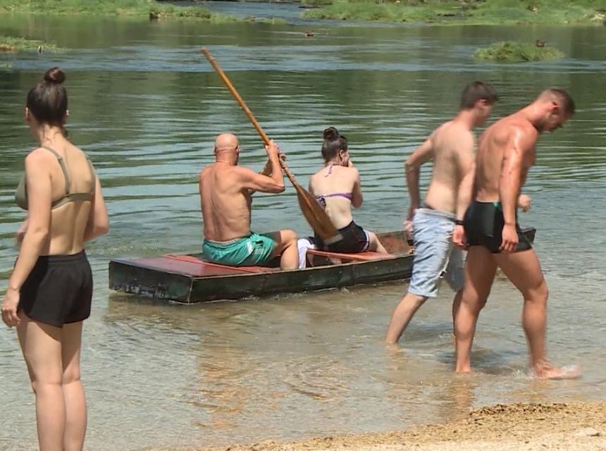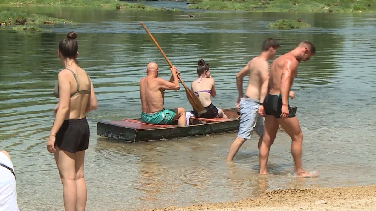 Vrućine su izmamile ogroman broj ljudi na kupališta, posebno u danima vikenda, tako da su brojne plaže pored Une puna izletnika.