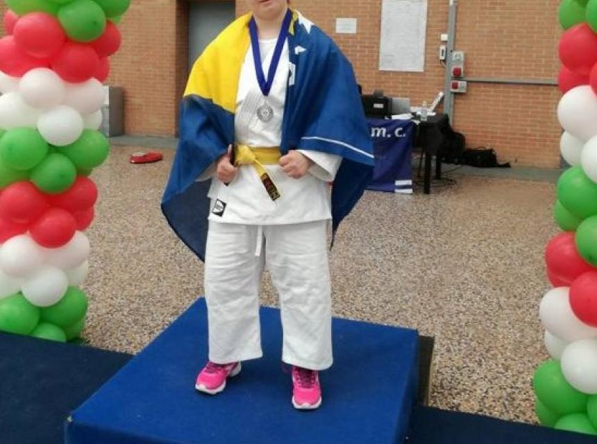 Azra Dedić iz Bihaća, prva zaposlena osoba u BiH s Down sindromom, koja se već deset godina aktivno bavi i džudom, osvojila je srebrenu medalju u A kategoriji takmičenja u G-džudu u Italiji.