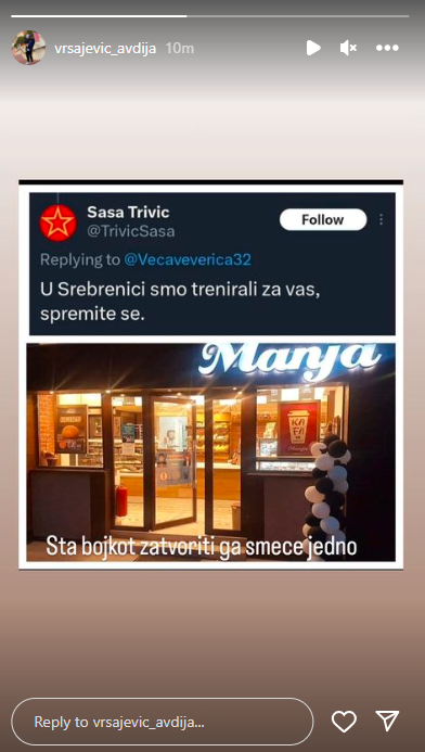 Jučer je Trivić na društvenim mrežama odgovorio jednom pratiocu na sljedećeni način “U Srebrenici smo trenirali za vas, spremite se.”
