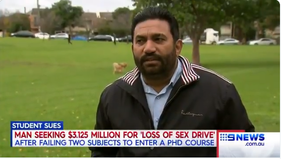 Kuldip Men (Kuldeep Mann, 52), bivši student Univerziteta "James Cook" u Kvinslendu, tuži fakultet zbog "mentalne torture" koja je uzrokovala gubitak želje za seksom, a traži odštetu od čak tri miliona dolara (više od 2,6 miliona eura), prenosi "9 News".