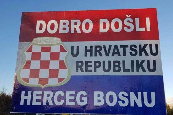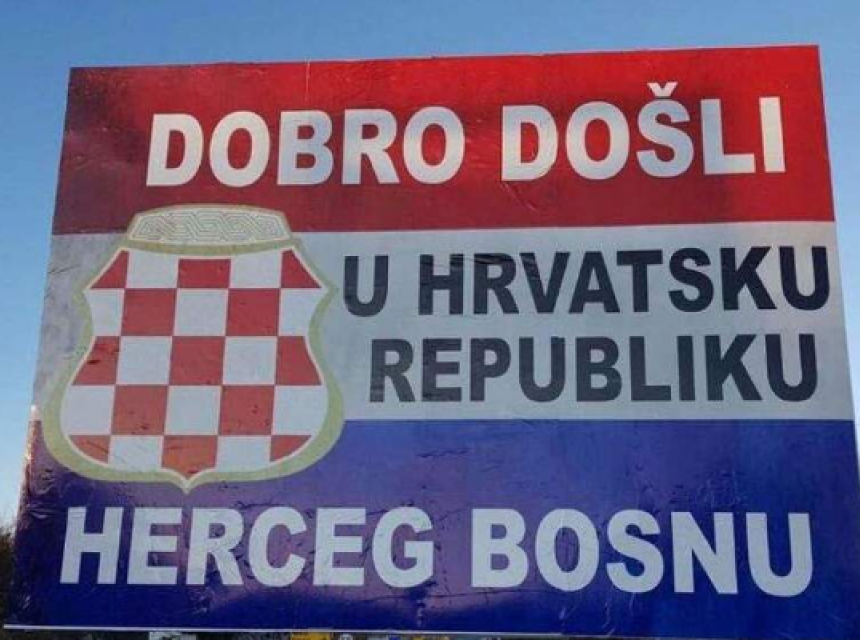 U blizini Graničnog prelaza Kamensko na jugozapadu naše zemlje postavljen je veliki plakat sa natpisom "Dobro došli u hrvatsku republiku Herceg Bosnu".